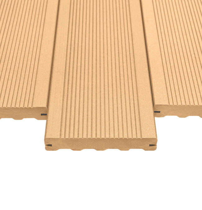 Dřevoplastová prkna s unikátním povrchem GROOVE nabízejí moderní design s čistými liniemi díky svému drážkovanému vzhledu. Drážkování zároveň pomáhá zvyšovat bezpečnost při pohybu na terase a činí tak z teras GROOVE ideální volbu k bazénům a vířivkám.