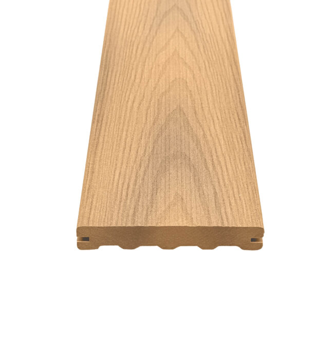 Výrazný reliéfní povrch zvyšuje bezpečnost tím, že minimalizuje riziko klouzání, a protože se neprovádí moření ani impregnace, prkna netvoří třísky jako dřevěné terasy. Jsou vyrobena ze 100 % recyklovatelného materiálu.
