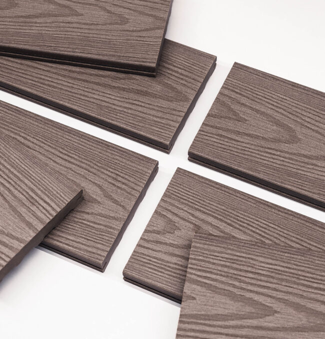 Naše kompozitní prkna mají vzhled evokující luxusní exotické dřevo, což dodává terase elegantní a přírodní charakter. Jsou navržena tak, aby odolávala nástrahám počasí – slunce, déšť, mráz či sníh nemají vliv na jejich tvar, který zůstává stabilní po celou dobu životnosti. Kromě vysoké odolnosti proti mechanickému poškození dochází během prvních měsíců k přirozenému vyzrávání barvy, což podtrhuje jejich jedinečný vzhled.