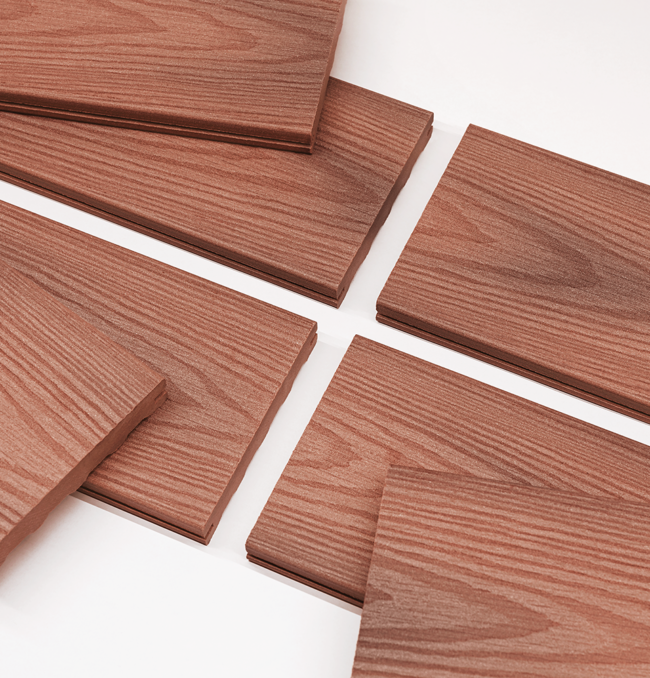 Výrazný reliéfní povrch zvyšuje bezpečnost tím, že minimalizuje riziko klouzání, a protože se neprovádí moření ani impregnace, prkna netvoří třísky jako dřevěné terasy. Jsou vyrobena ze 100 % recyklovatelného materiálu.