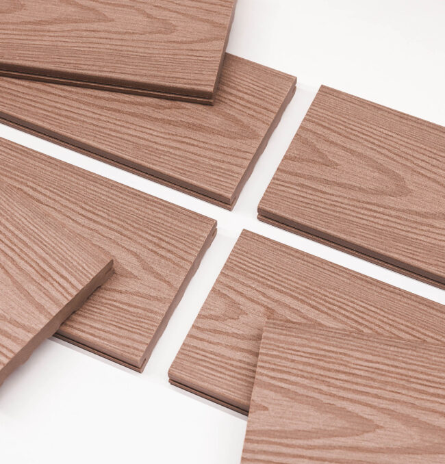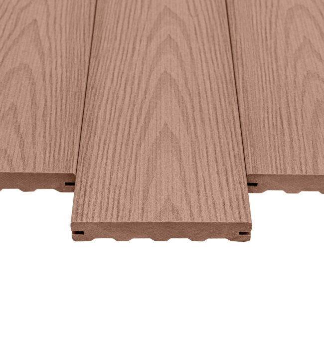 Naše kompozitní prkna mají vzhled evokující luxusní exotické dřevo, což dodává terase elegantní a přírodní charakter. Jsou navržena tak, aby odolávala nástrahám počasí – slunce, déšť, mráz či sníh nemají vliv na jejich tvar, který zůstává stabilní po celou dobu životnosti. Kromě vysoké odolnosti proti mechanickému poškození dochází během prvních měsíců k přirozenému vyzrávání barvy, což podtrhuje jejich jedinečný vzhled.