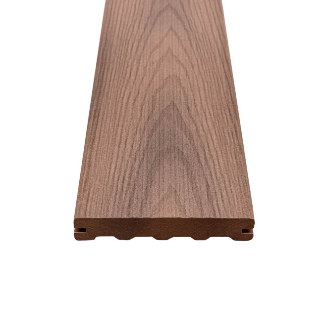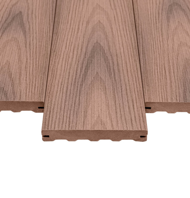 Naše kompozitní prkna mají vzhled evokující luxusní exotické dřevo, což dodává terase elegantní a přírodní charakter. Jsou navržena tak, aby odolávala nástrahám počasí – slunce, déšť, mráz či sníh nemají vliv na jejich tvar, který zůstává stabilní po celou dobu životnosti. Kromě vysoké odolnosti proti mechanickému poškození dochází během prvních měsíců k přirozenému vyzrávání barvy, což podtrhuje jejich jedinečný vzhled.