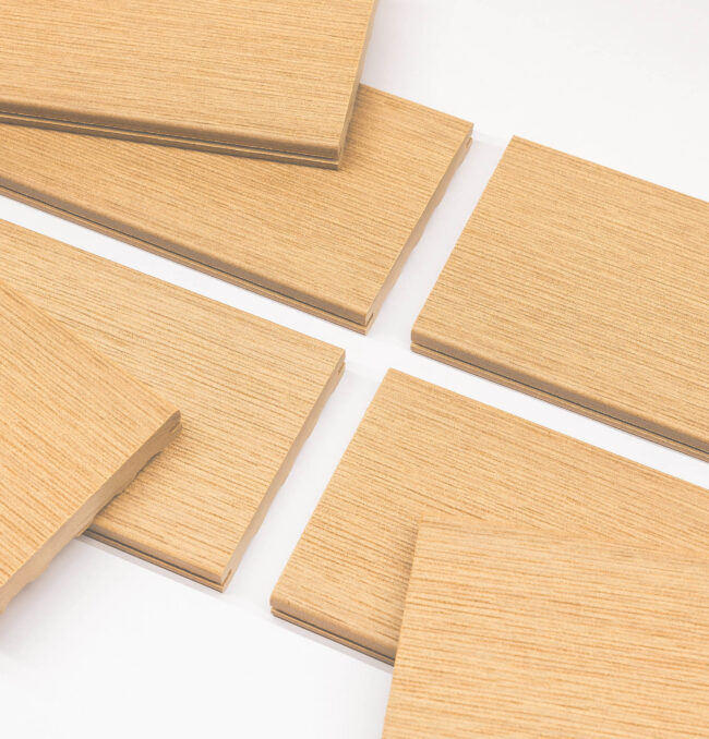 Naše kompozitní prkna mají vzhled evokující luxusní exotické dřevo, což dodává terase elegantní a přírodní charakter. Jsou navržena tak, aby odolávala nástrahám počasí – slunce, déšť, mráz či sníh nemají vliv na jejich tvar, který zůstává stabilní po celou dobu životnosti. Kromě vysoké odolnosti proti mechanickému poškození dochází během prvních měsíců k přirozenému vyzrávání barvy, což podtrhuje jejich jedinečný vzhled.