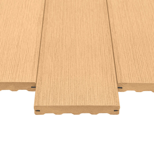 Terasy s tímto profilem jsou vysoce odolné vůči povětrnostním vlivům, jako jsou slunce, déšť, mráz či sníh, a zachovávají si svůj tvar po celou dobu životnosti. V prvních měsících po instalaci probíhá přirozené vyzrávání barvy, které dotváří finální vzhled prken.