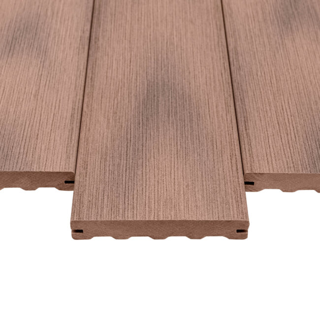 Naše kompozitní prkna mají vzhled evokující luxusní exotické dřevo, což dodává terase elegantní a přírodní charakter. Jsou navržena tak, aby odolávala nástrahám počasí – slunce, déšť, mráz či sníh nemají vliv na jejich tvar, který zůstává stabilní po celou dobu životnosti. Kromě vysoké odolnosti proti mechanickému poškození dochází během prvních měsíců k přirozenému vyzrávání barvy, což podtrhuje jejich jedinečný vzhled.